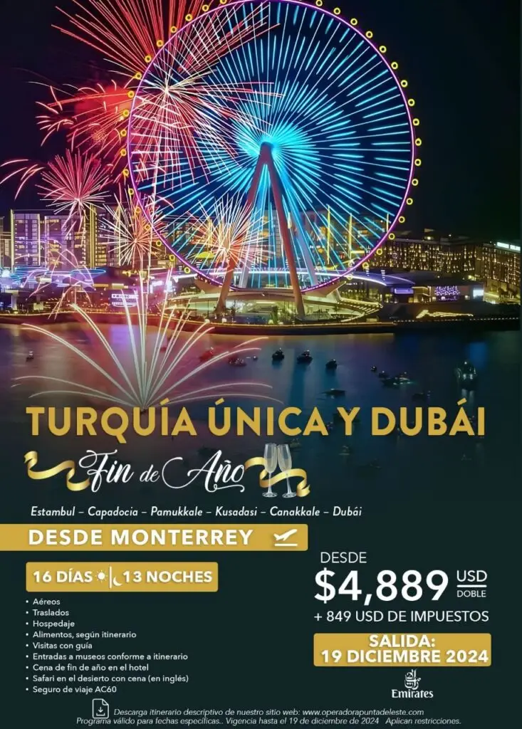 Salte de Viaje a Turquia y Dubai este fin de año 2024. Salida el 19 de diciembre 2024